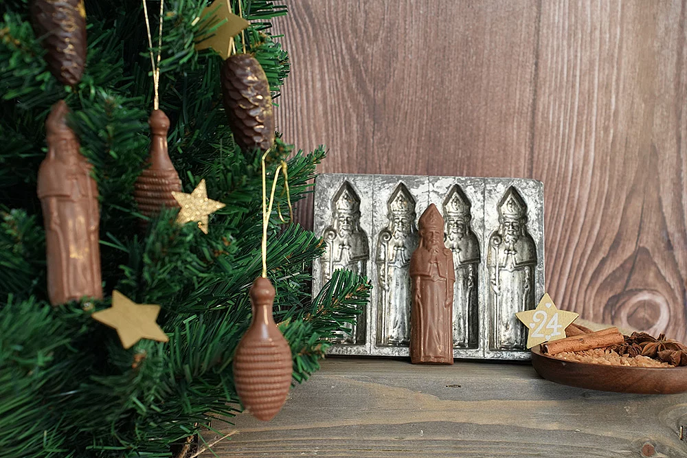 Während die ersten Kerzen angezündet werden und Ruhe einkehrt, gießen wir in unserer Confiserie die letzten Tafeln und Figuren für unseren schokoladigen Adventskalender und unsere historischen Formen kommen noch einmal zum Einsatz. In den vergangenen Wochen haben wir euch mit auf eine kleine Zeitreise genommen. Wir haben gezeigt, wie mit viel Liebe, Handarbeit und den Werkzeugen vergangener Generationen kleine schokoladige Kunstwerke entstehen. Diese alten Formen erzählen Geschichten von Tradition und Beständigkeit . Wir hoffen, dass euch unsere schokoladige Zeitreise genauso viel Freude bereitet hat wie uns.