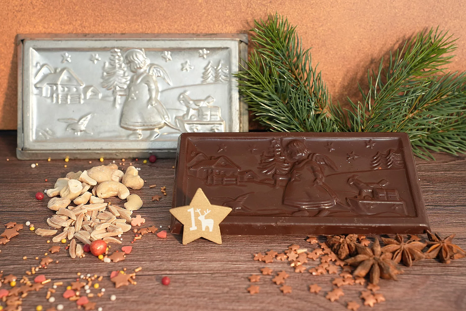 Chocolate molds were first used in the 19th century. Before that, chocolate could only be enjoyed in liquid form. For the production of chocolate bars and molds, chocolate mass with a high cocoa butter content was needed so that the chocolate was more liquid and spread well in the molds. The very first chocolate molds were made of brass, copper or cast steel. Steel molds were often given a tin coating to prevent them from rusting. Today, modern chocolate molds made of plastic are used, which can be purchased in stores.